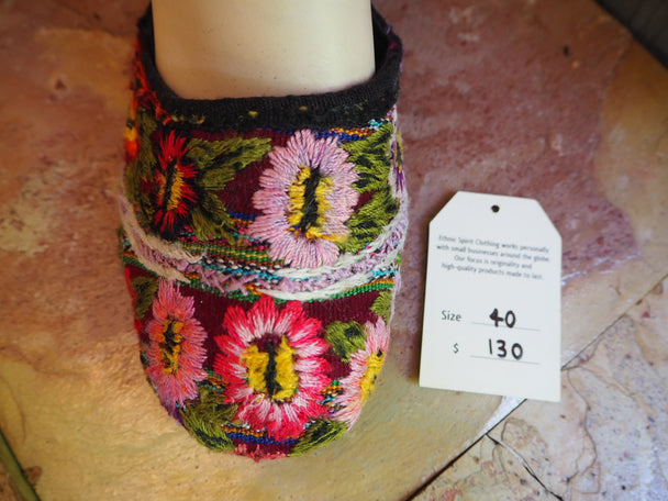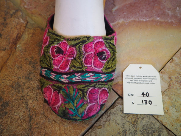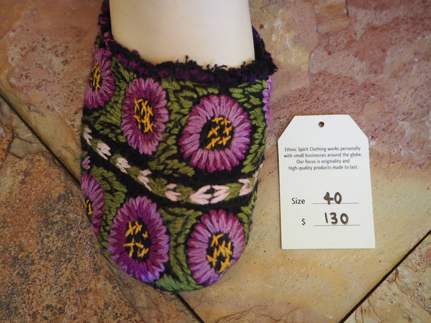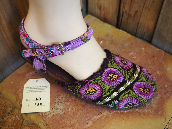 Size 40 Ballerina Sandals - Purple Flowers on Green