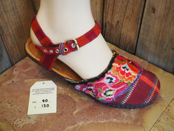 Size 40 Ballerina Sandals - Red and Pink Roses