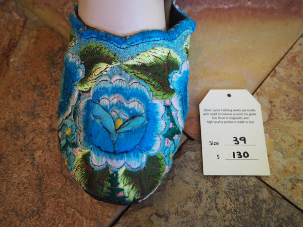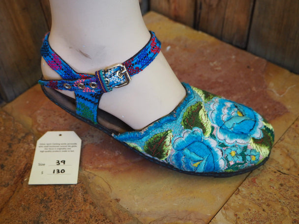 Size 39 Ballerina Sandals - Electric Blue Roses