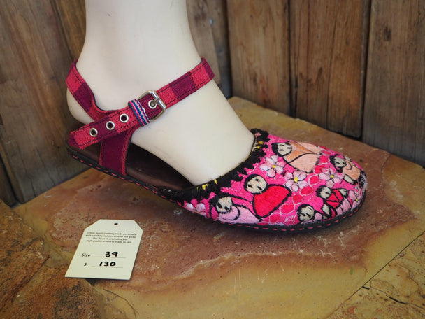 Size 39 Ballerina Sandals - Hot Pink Pansies