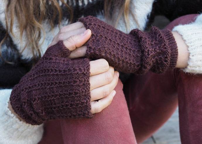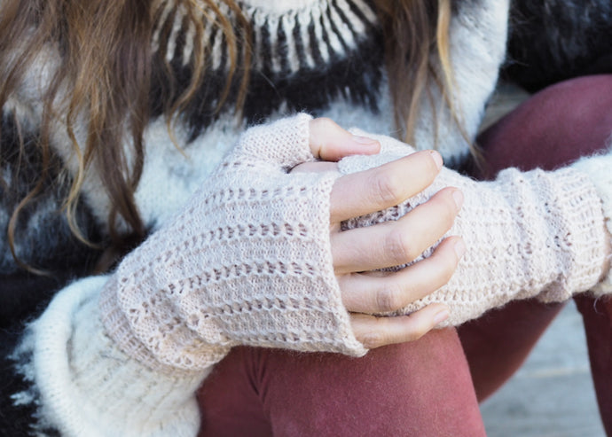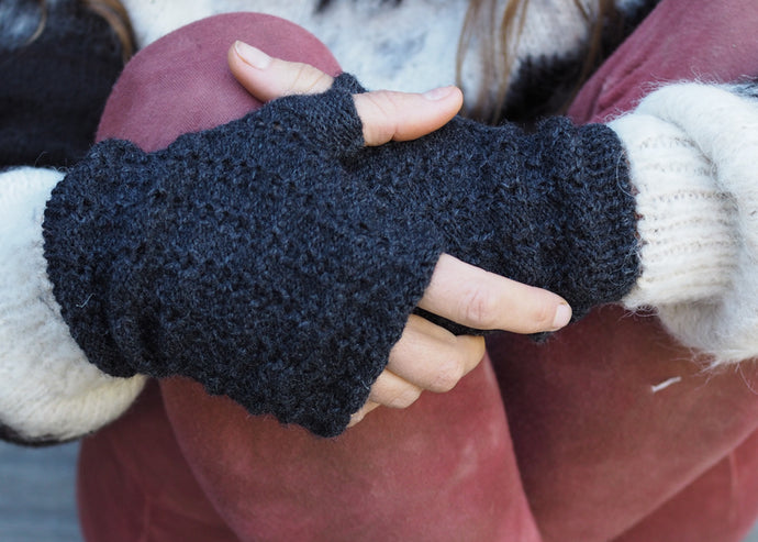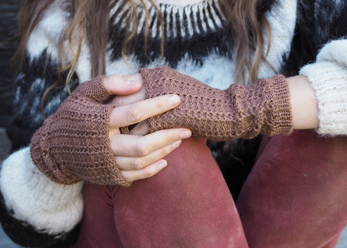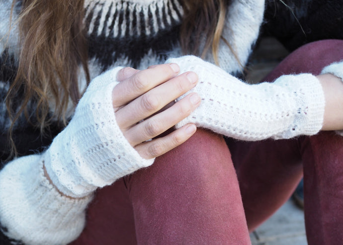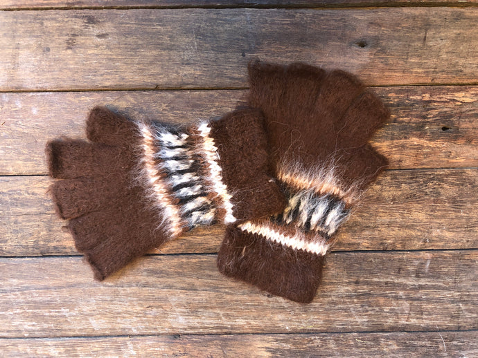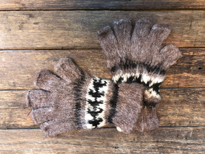 Speckled brown and white- Bolivian Double Alpaca Fingerless Gloves