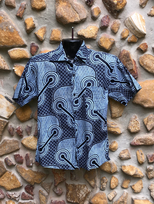 Small Love Shirt Cotton - Navy Dots African Print