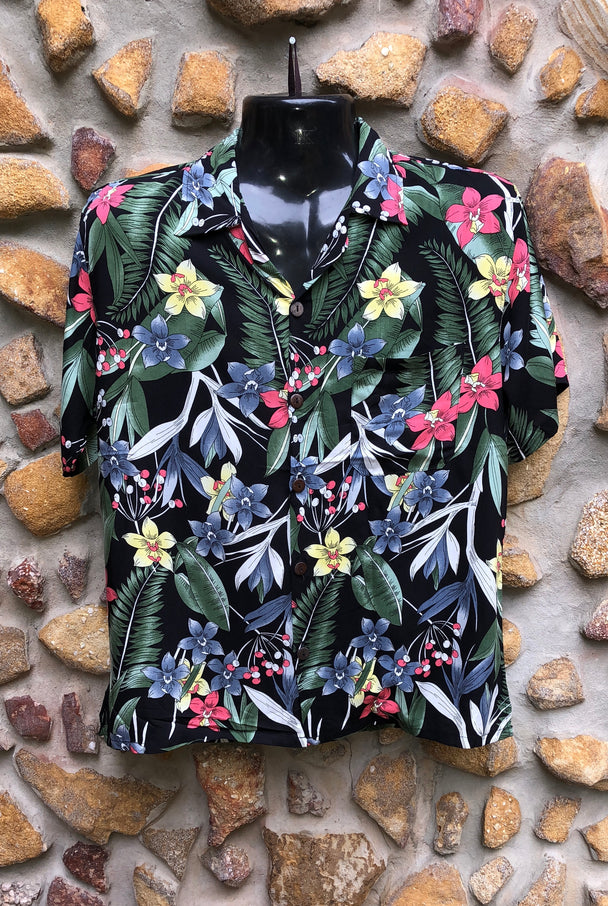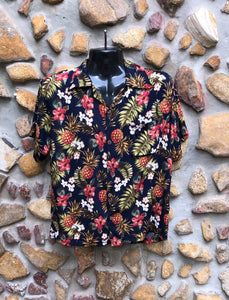 Small Love Shirt - Red Flowers and Pineapples on Black