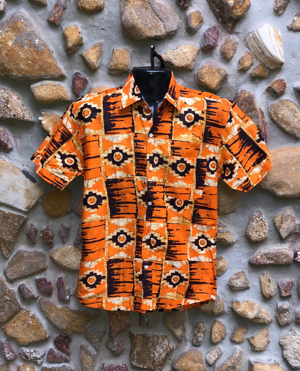 Small Love Shirt Cotton - Orange and Black African Print