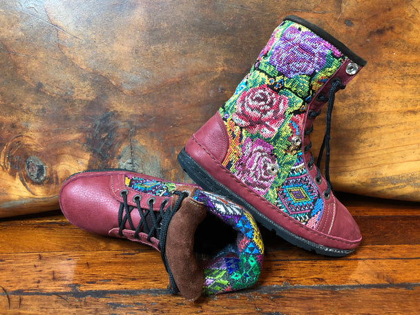 Size 39 Deluxe Desert Boots - Classic Roses on Burgundy Leather