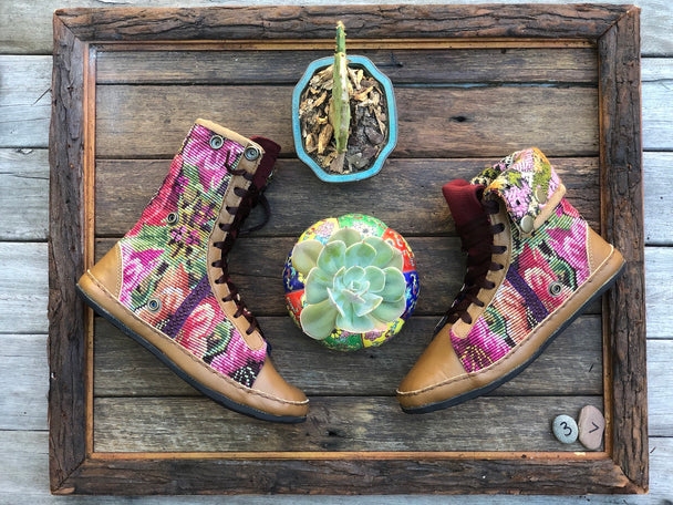 Size 35 - Fold down Desert Boots - Burgundy Birds