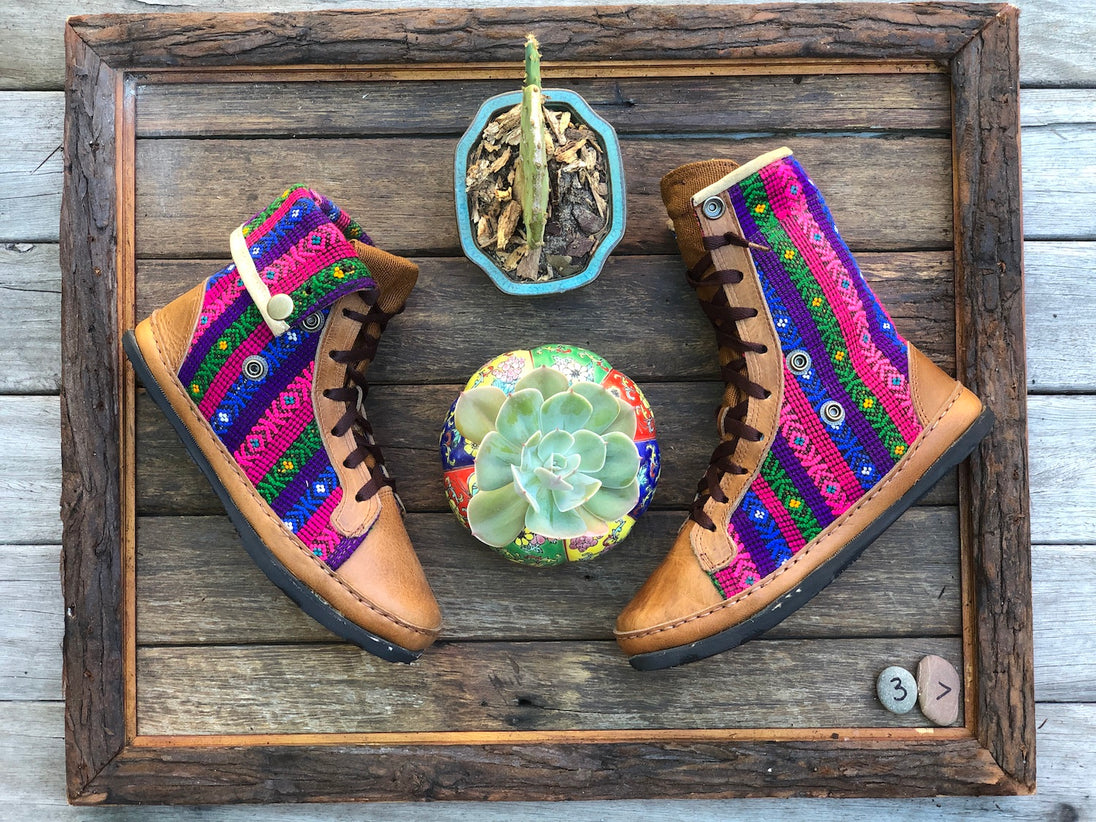 Handmade by an Indigenous Guatemalan family of shoe-makers with three generations of experience, the soles are innovatively made from recycled car-tyres and are not only glued but stitched on through every layer of the sole. The foam inner-sole incorporated into the internal layers provides maximum comfort while remaining a light weight shoe perfect for travel, walking and dancing.
