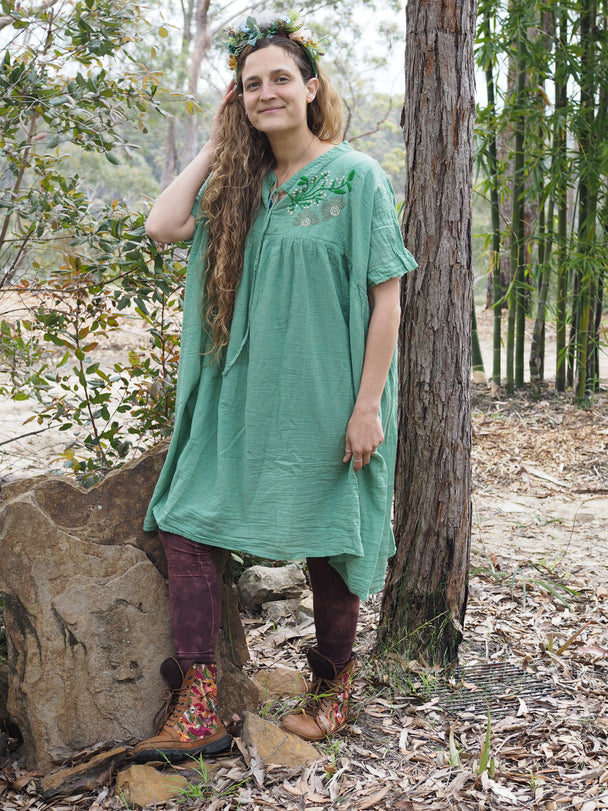Karuna Blouse - Warm Plum with Turquoise Petals