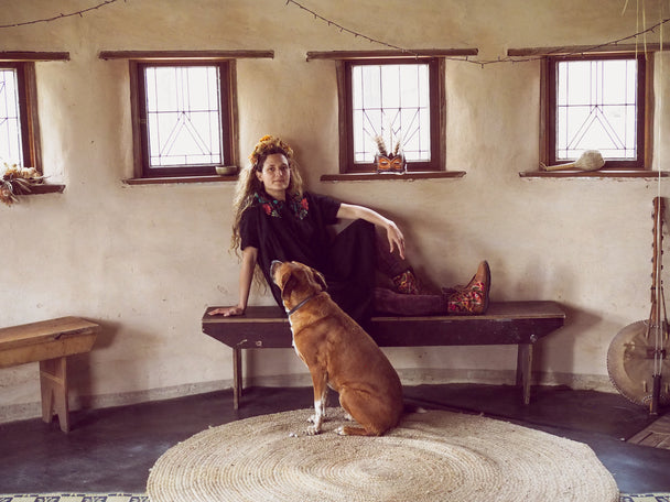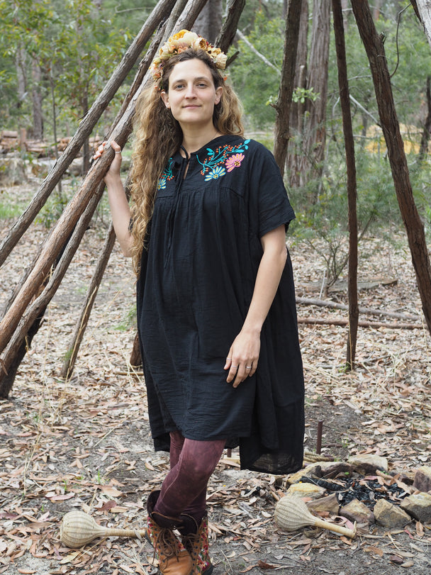 Karuna Blouse - Mexican Fiesta Black with Pink and Blue Petals