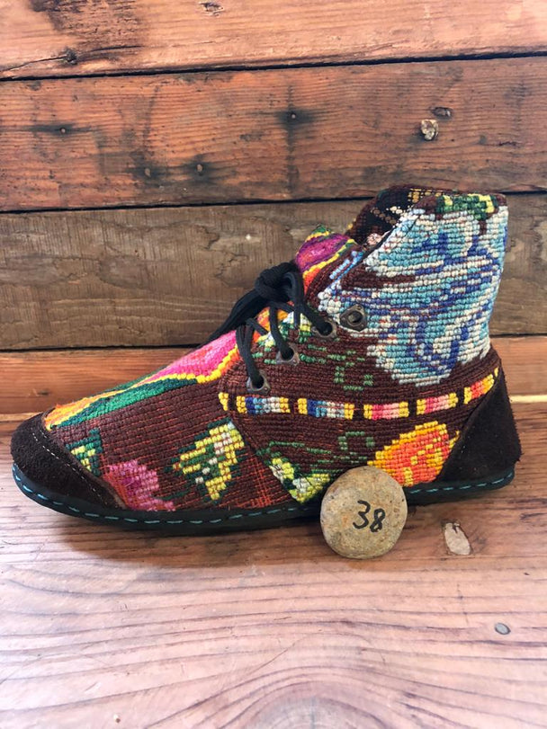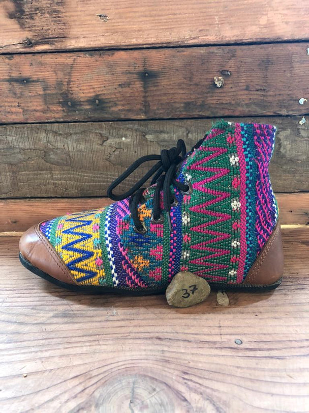 Size 36 Cloth Moccasins Yellow, Red and Purple