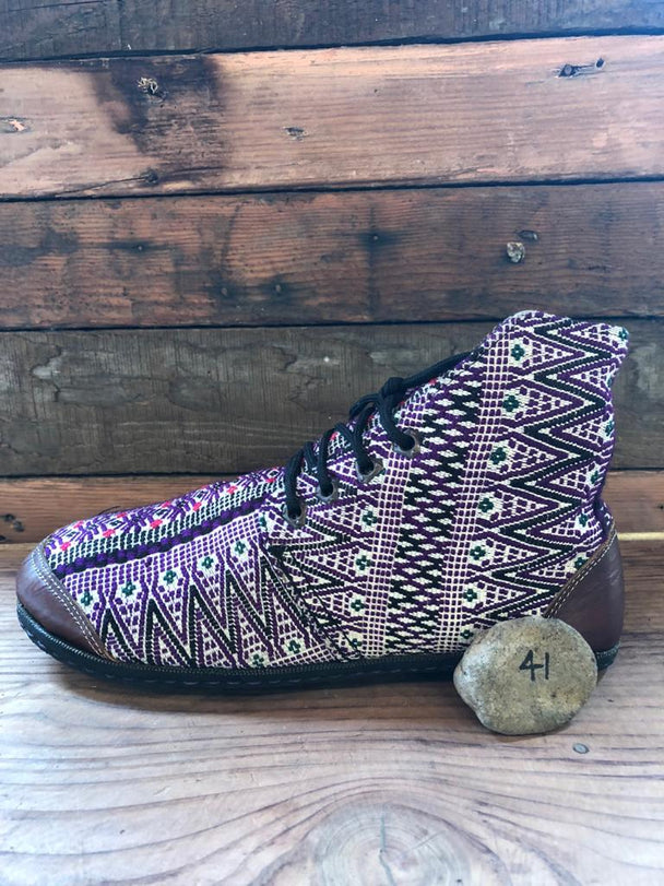 Size 41 Cloth Moccasins Purple and Pastel Diamonds