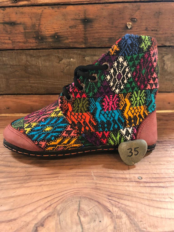 Size 35 Cloth Moccasins Red and Green