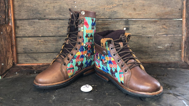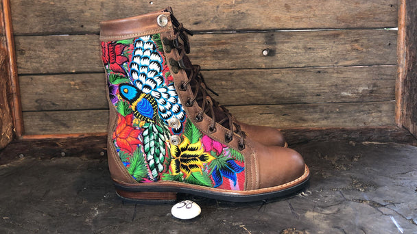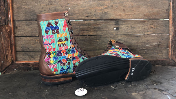 Size 38 Gypsy Boots - Mayan Magical Animals on Turquoise