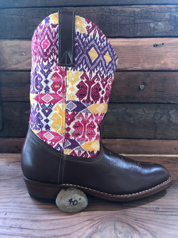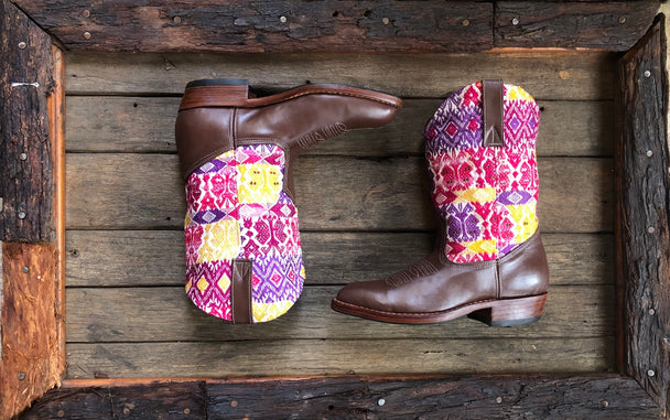 Size 38 - Convertible Cowgirl Boots - Pink Yellow Funky Fun