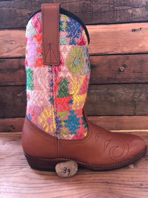 Size 38 - Convertible Cowgirl Boots - Pink Yellow Funky Fun
