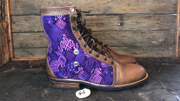 Size 44 Gypsy Boots - Purple Mayan Birds