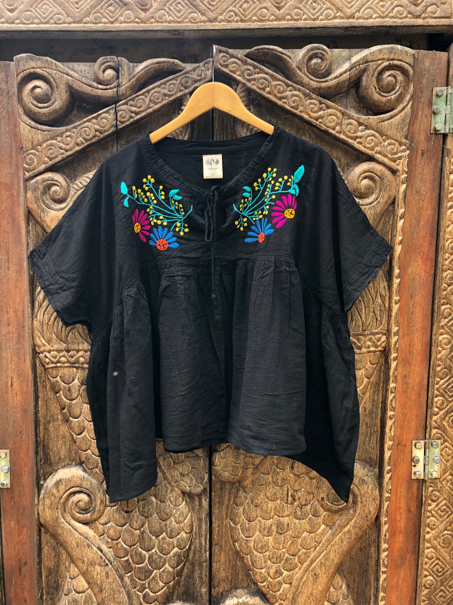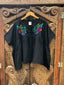 Karuna Blouse - Mexican Fiesta Black with Pink and Blue Petals