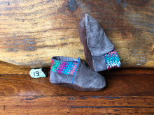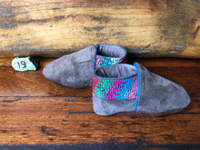 Suitable as a first crawling or walking shoe, these Baby Moccasins are full of fun-coloured suede leather and antique fabrics to match.