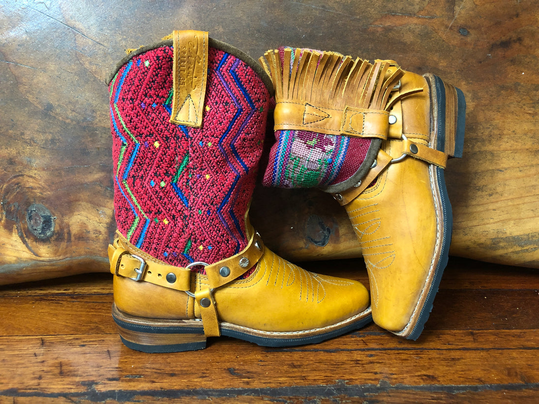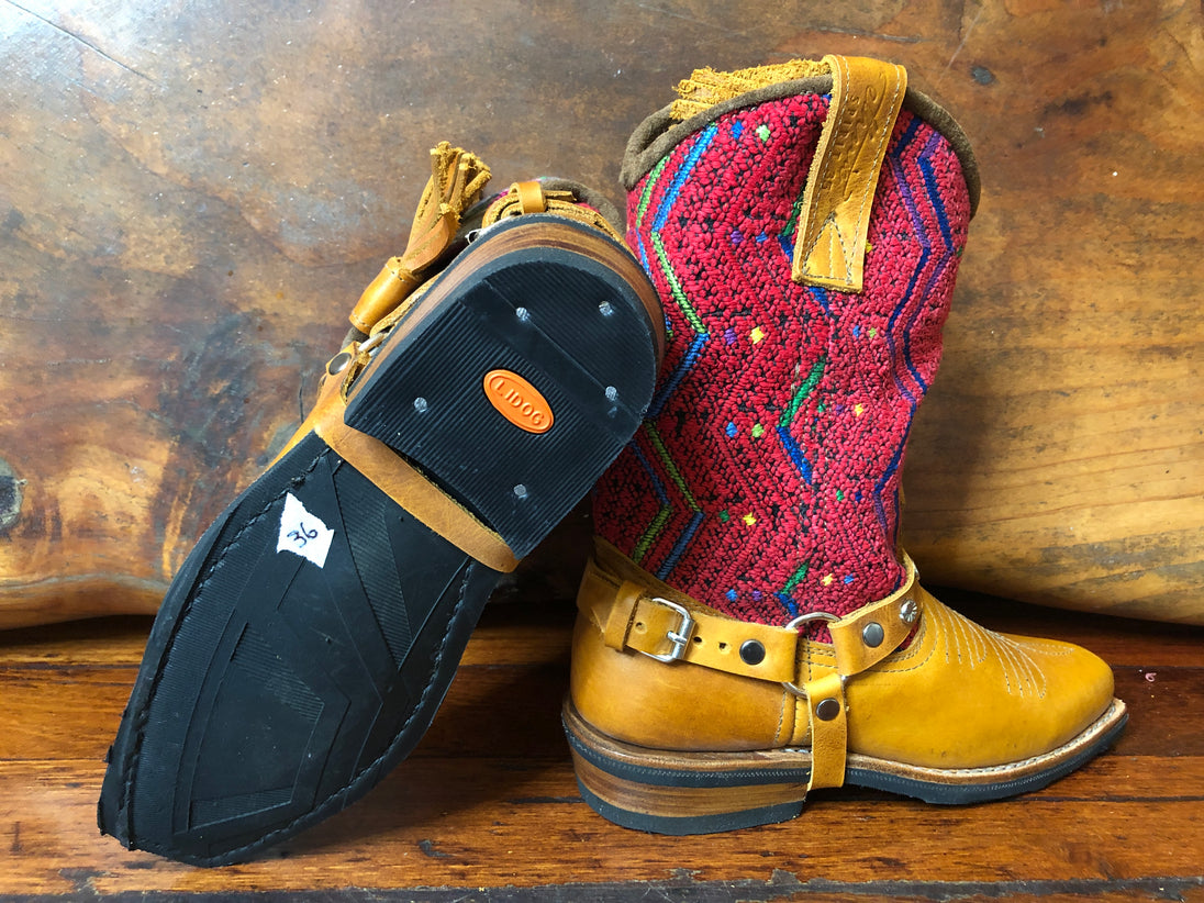 Size 36 Blunt-toe Cowgirl Bling Boots Red Zigzags