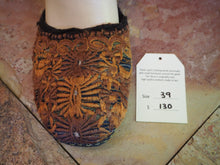The unique hand-embroidered fabric covering the toe is recycled from the neck pieces of antique Mayan blouses, which are the most exquisitely embroidered part of the work, often depicting flowers and birds from the area where the blouse originates. The circular nature of the neck-piece provides a perfect shape for the Ballerina sandal, enclosing the upper foot and leaving the rest of the foot free.