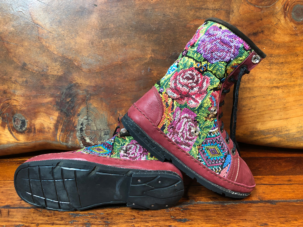 Size 39 Deluxe Desert Boots - Classic Roses on Burgundy Leather