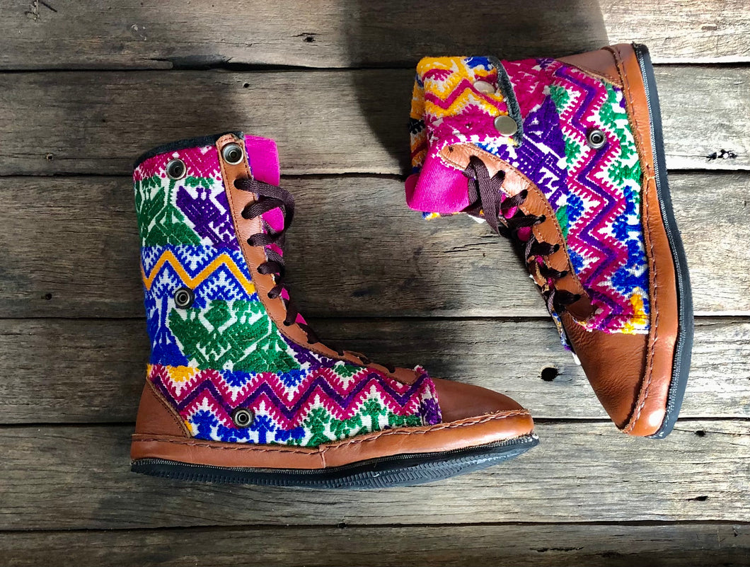 Perfect for lovers of sustainable, ethical and fair-trade products, the antique hand-embroidered blouses with Mayan symbology that are recycled become a "one of a kind" shoe with a unique combination of external and internal fabric and create a completely unique pair of shoes unlike anyone else in the world. They are sure to become your favourite choice of comfortable shoe wear all year round.