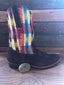 Antique hand-embroidered blouses with Mayan symbology are recycled to create a "one of a kind" boot with a unique combination of external fabric and quality natural leather upper.