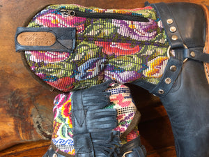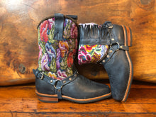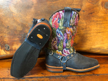 Size 40 Blunt-toe Cowgirl Bling Tulips on Blue Leather