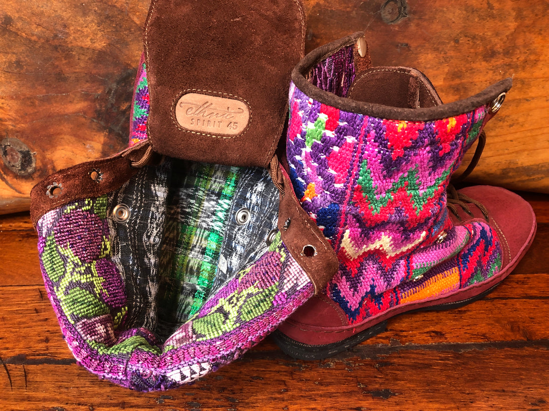Perfect for lovers of sustainable, ethical and fair-trade products, the antique hand-embroidered blouses with Mayan symbology that are recycled become a "one of a kind" shoe with a unique combination of external and internal fabric and create a completely unique pair of shoes unlike anyone else in the world. They are sure to become your favourite choice of comfortable shoe wear all year round.