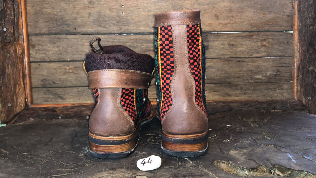 Our Gypsy boots are handmade by an Indigenous Guatemalan family of shoe-makers with three generations of experience. The soles are a combination of compressed leather and reclaimed car-tyres, which can be resoled and can last up to 30 years if cared for well.
