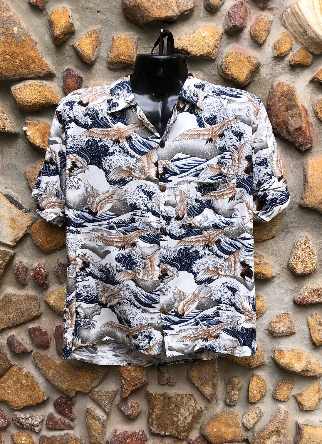 Small Love Shirt - The Wave and Cranes Japanese Print