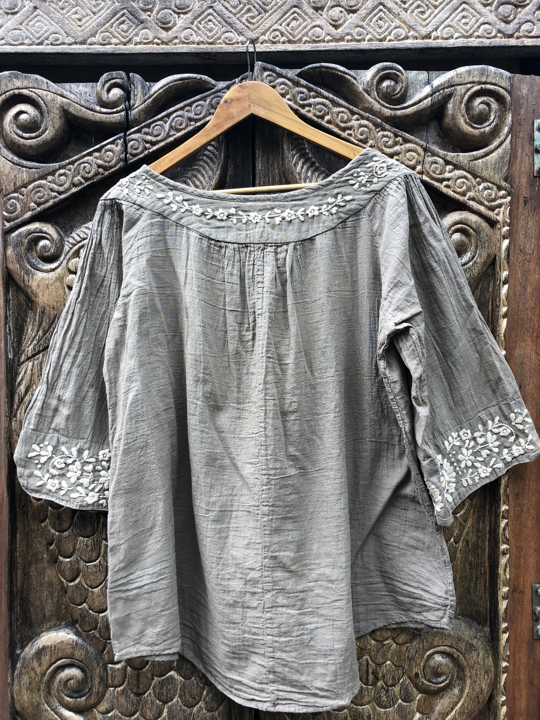 Ethically hand-embroidered by a small family business supporting women working from their homes.